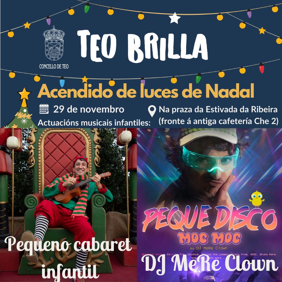 Este sábado acenderemos as luces de Nadal en Teo. A partir das 18.30 horas, agardámosvos na praza da Estivada da Ribeira para dar así comezo a estas datas tan entrañables. Os máis cativos poderán logo desfrutar de balde dun chocolate quente con churros e divertirse coas actuacións musicais.
