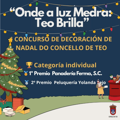 O Concello de Teo fai público o fallo do Xurado do Concurso de Decoración do Nadal 2025 “Onde a luz medra: Teo brilla”, unha vez finalizado o proceso de valoración conforme ás bases reguladoras.