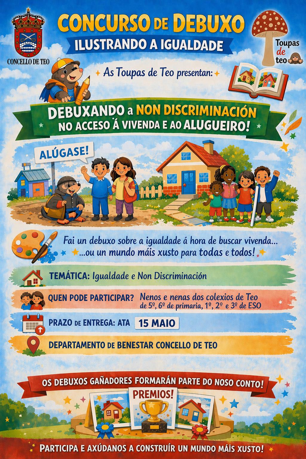 O grupo de participación da infancia e adolescencia do noso concello, As Toupas de Teo, están traballando sobre o dereito á non discriminación e á igualdade. Coincidindo co Día Internacional do Libro, convócase un concurso de debuxo para ilustrar o conto que este grupo redactou.