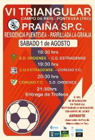 O campo de fútbol do praíña, na parroquia de Reis, acollerá este triangular que ten como principal atraente a participación do Coruxo F.C., conxunto que milita na 2ªB, quen disputará o torneo contra a S.D. Ordes, que milita na terceira división e o C.D. Estradense, que está na Preferente Galicia Sur.