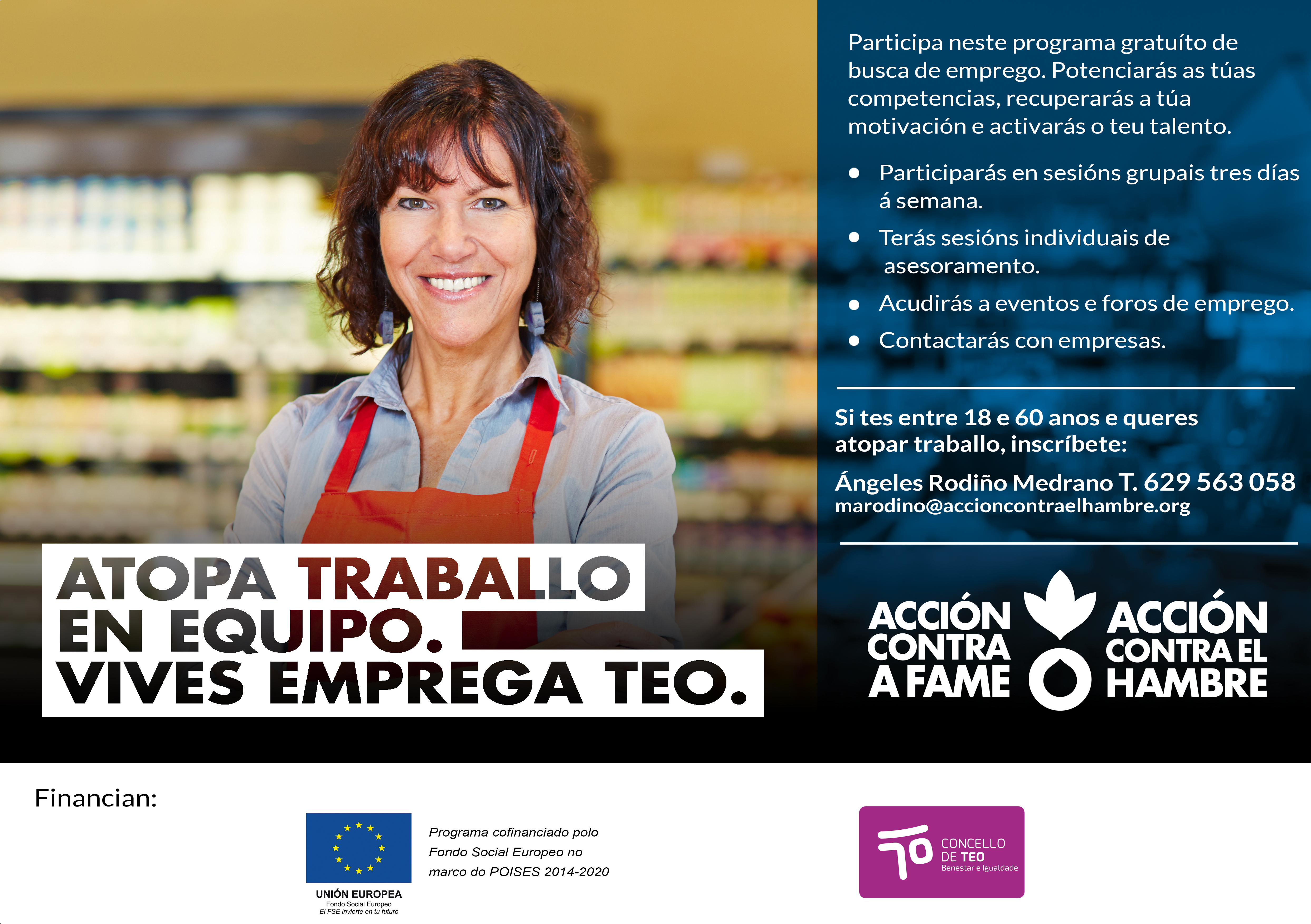 O Concello de Teo pon en marcha unha nova edición do programa Vives emprega para axudar ás persoas desempregadas a buscar unha opción laboral. Esta é xa a quinta edición dun programa polo que pasaron máis de 96 persoas do Concello. Esta actividade faise en colaboración coa entidade Acción contra el Hambre.
