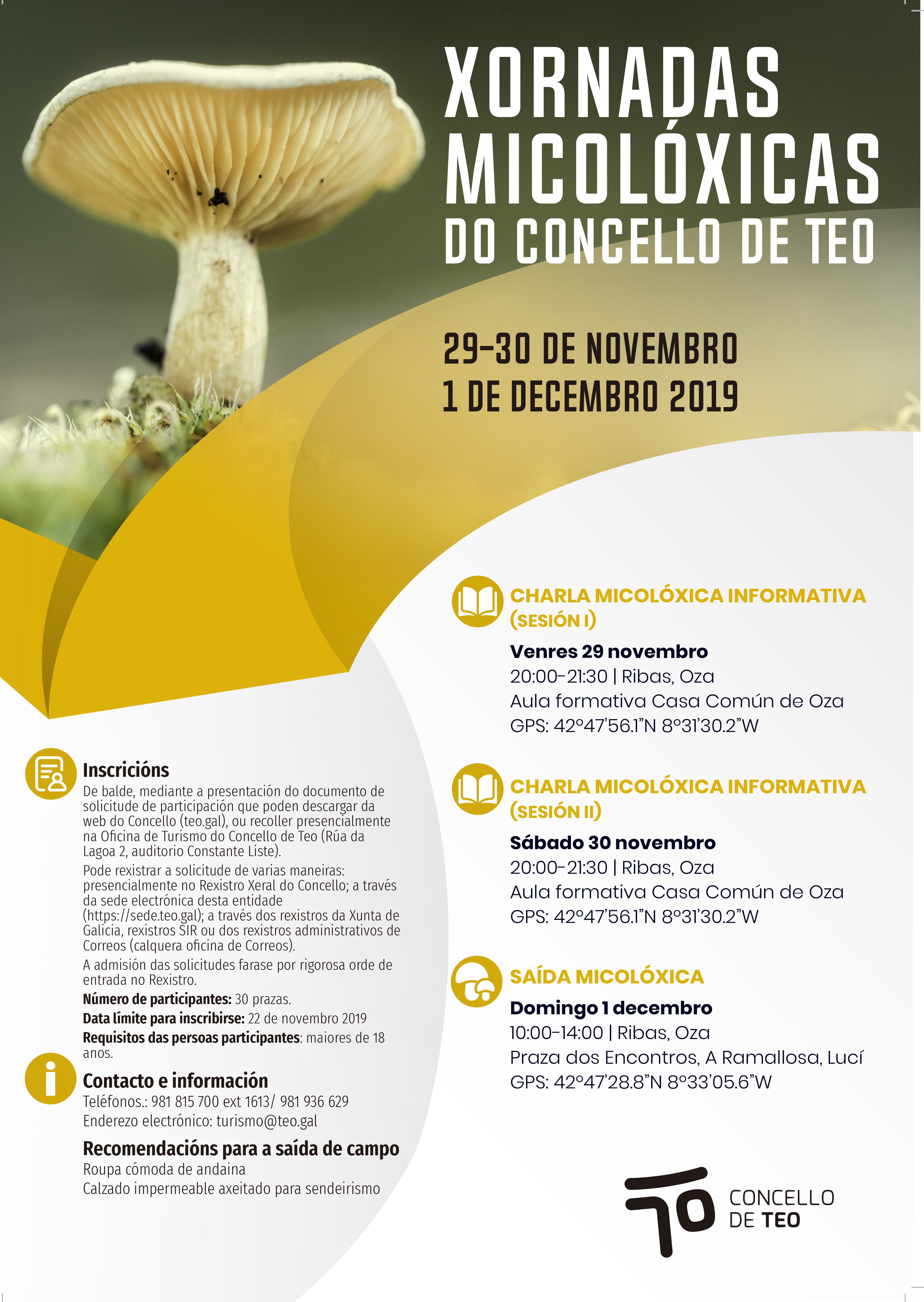 (EDITADO) Publícase a listaxe de persoas admitidas e en listaxe de agarda para as xornadas micolóxicas. Consulta aquí a listaxe.