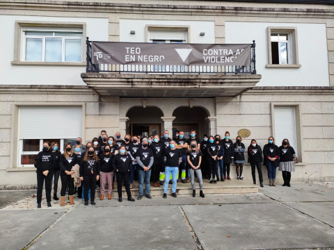 O Concello de Teo volve a concentrarse, nun acto institucional, para rexeitar a violencia de xénero. Esta mañá, persoal municipal, participou nesta actividade na que se lle deu lectura á Declaración institucional polo 25 N.