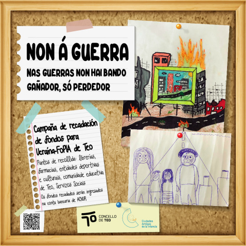 A rapazada que participa no Fopia deseñou toda a campaña e tamén a cartelería e imaxe da mesma na que aparecen debuxos que amosan a destrución que provocan as guerras e os enfrontamentos bélicos. Tamén se recolle o lema "Non á guerra. Nas guerras non hai bando gañador, só perdedor". Unha mensaxe clara que traslada a mocidade de Teo e que interpela directamente á sociedade que quere colaborar dalgún xeito con este drama que está acontecendo coa guerra en Ucraína.