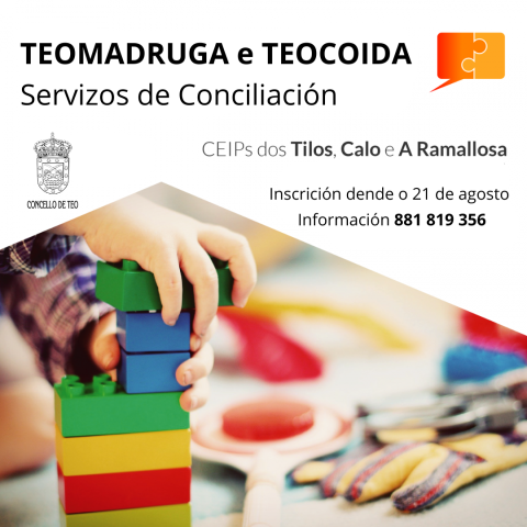 O Concello abre a inscrición nos programas de conciliación que se ofertan nos colexios teenses: o servizo TeoMadruga e o TeoCoida que atende polas tardes.