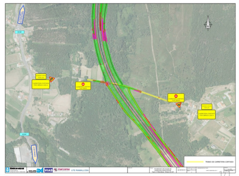 O corte temporal deste vial, que se prolongará desde mañá, día 3, e durante 3 meses, é necesario para realizar a construción do paso Inferior do Eixe 12 no marco da obra de prolongación da autovía, que é atravesado polo trazado do tronco da AG-59.