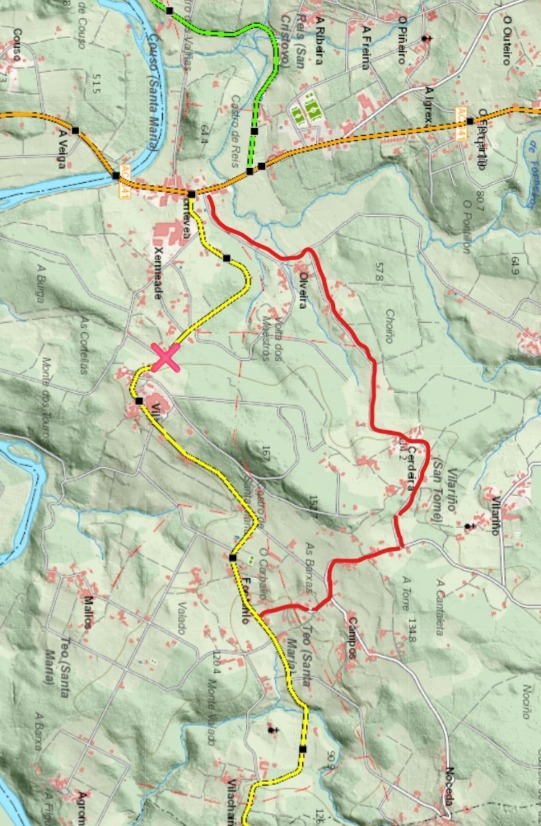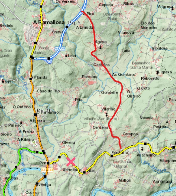 No caso dos vehículos pesados, deben continuar por esta estrada ata o enlace coa AG-59 nos Verxeles ou ben acceder no enlace de Ponte Ulla da AP-53 ata a AG-59.