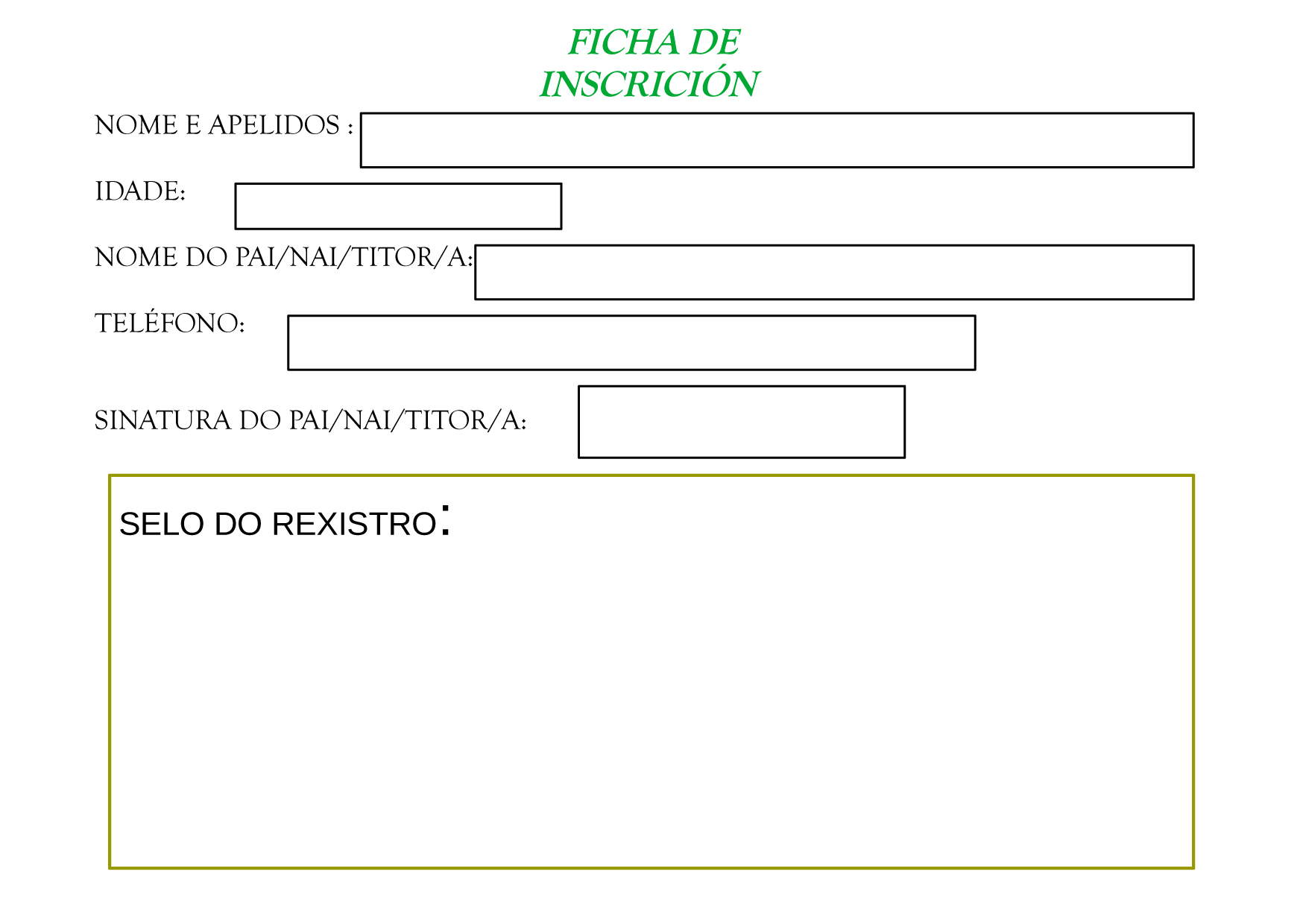 Para inscribirse hai que entregar a ficha de inscrición debidamente cuberta no Rexistro Xeral do Concello. Podes recoller as fichas na Aula de informática, nas oficinas municipais ou descargala premendo aquí